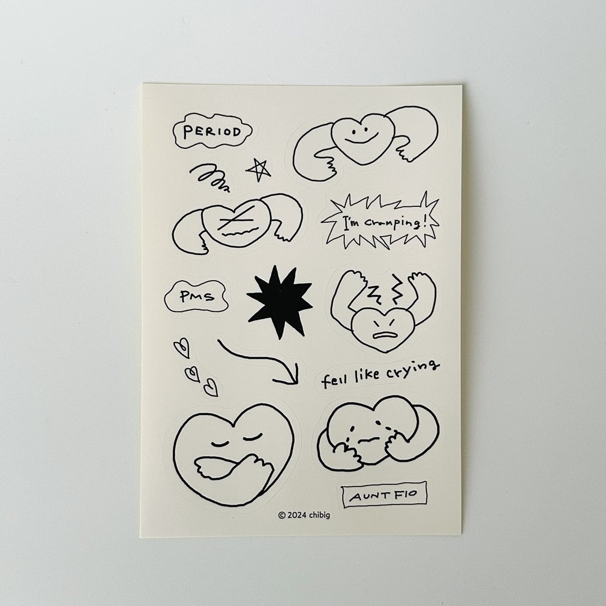 憂鬱な生理の時の気持ちをシールにしたアイテムです。