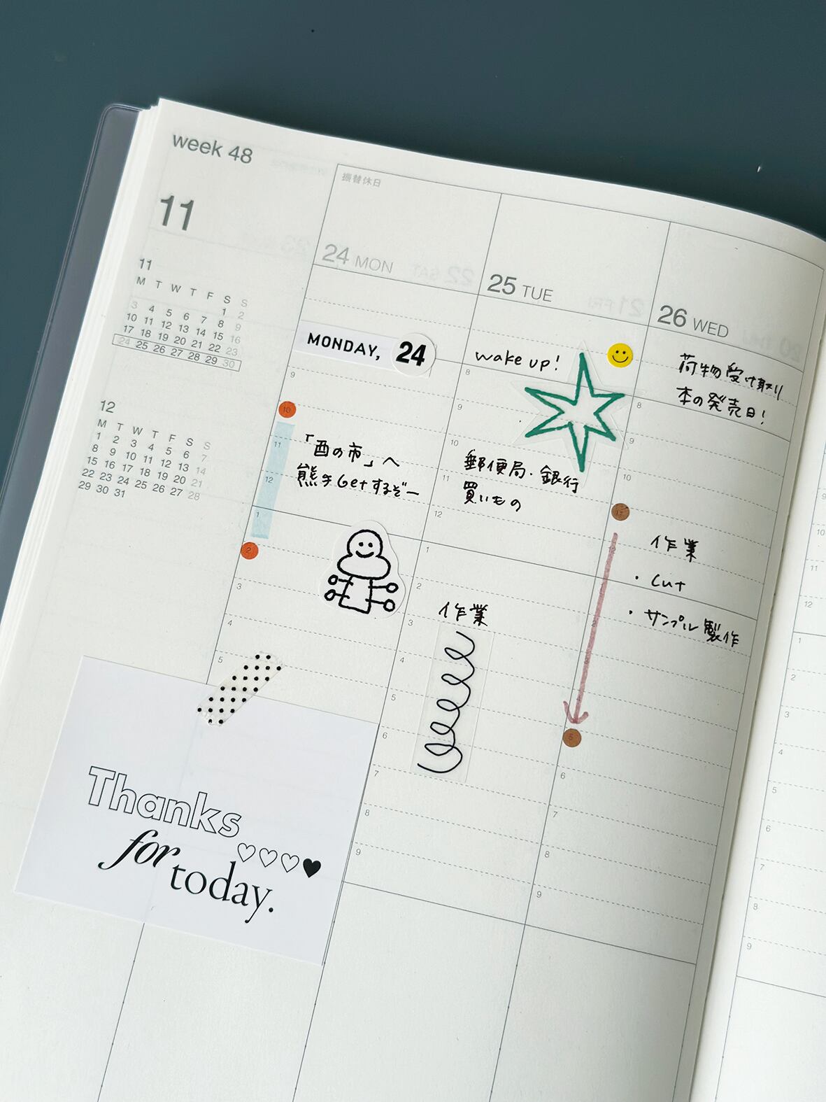 コンパクトなサイズなので、手帳やノートにも貼りやすく、ワンポイントのデコレーションとして使いやすいデザインに仕上げました。